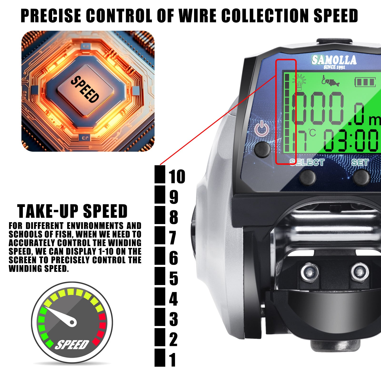 Digital Display Fishing Reel (TX1200) – USB Charging, Time/Temperature & Fish Alarm