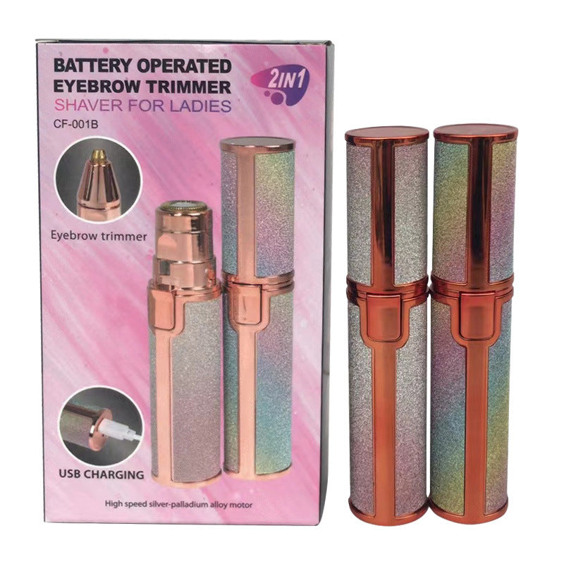 Compact lipstick-shaped eyebrow trimmer with USB charging. Perfect for precise eyebrow grooming on-the-go. Portable, easy to use, and travel-friendly beauty tool.